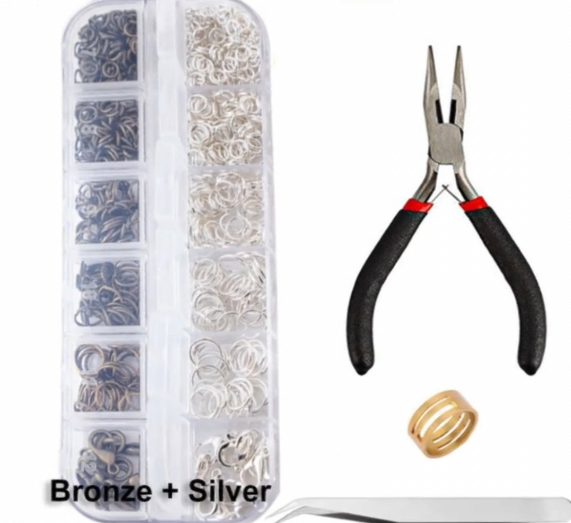 Essential DIY Jewelry Crafting Findings Starter Kit - Open Jump Ring + Lobster Clasps + 1 Brass Ring + 1 Tweezer + 1 Plier