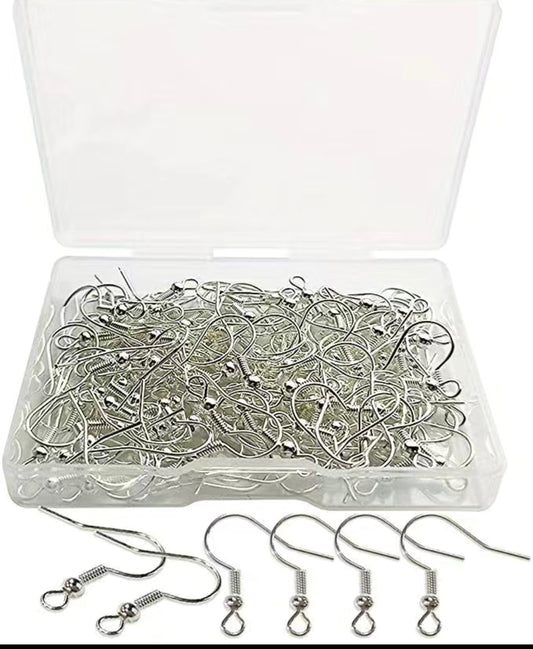 Earring Findings - Silvery Earring Hooks Hypo Allergenic Hooks (120ea/box)