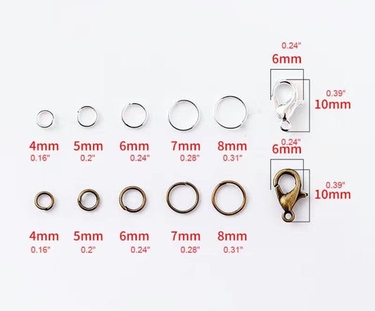 Essential DIY Jewelry Crafting Findings Starter Kit - Open Jump Ring + Lobster Clasps + 1 Brass Ring + 1 Tweezer + 1 Plier