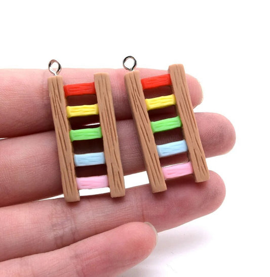 E0619 Mini Colourful Ladder Wooden Charm / Pendant